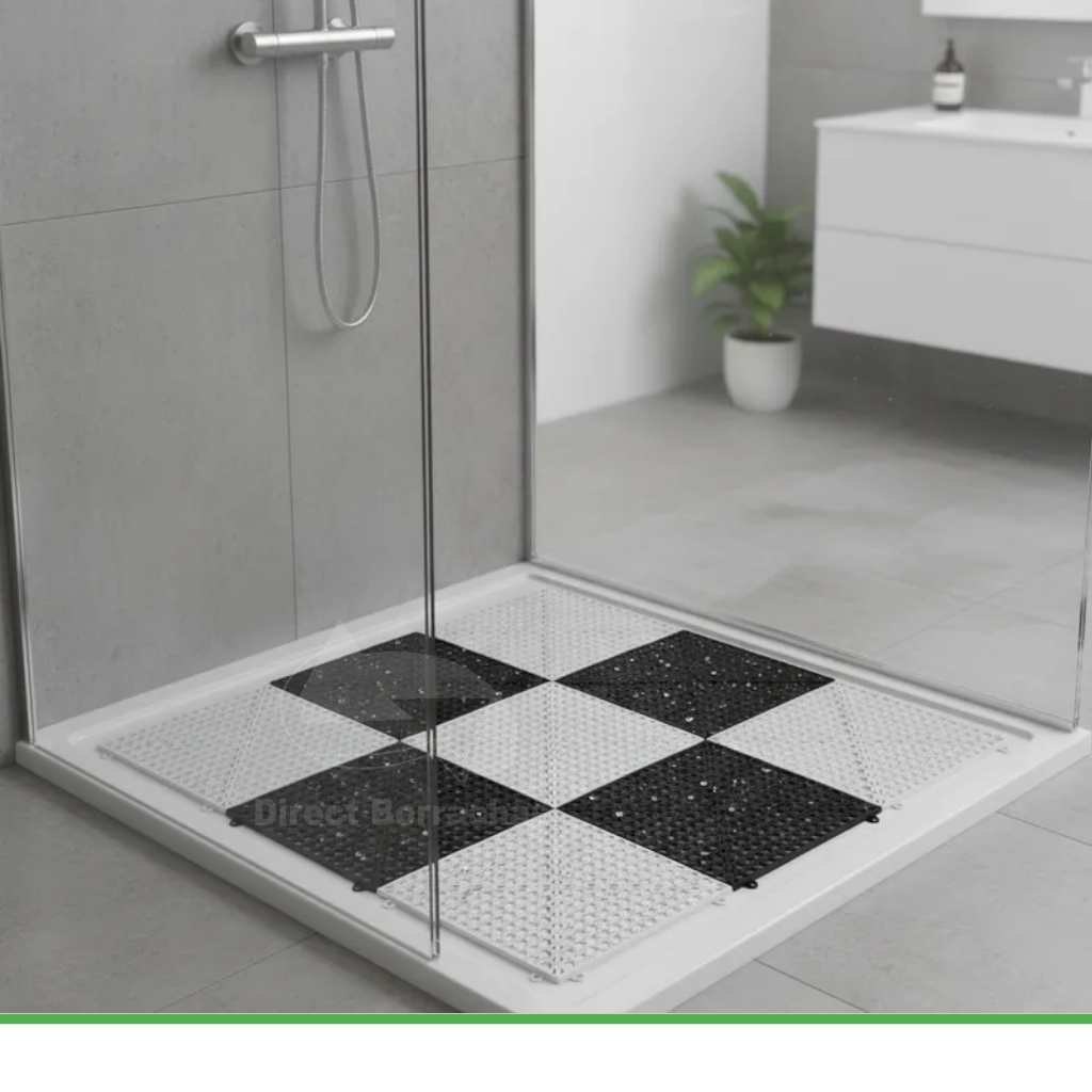 Kit 10 Tapete Modular para Box, Banheiro, Vestiários e Áreas Pet - Branco e Preto Direct Borrachas