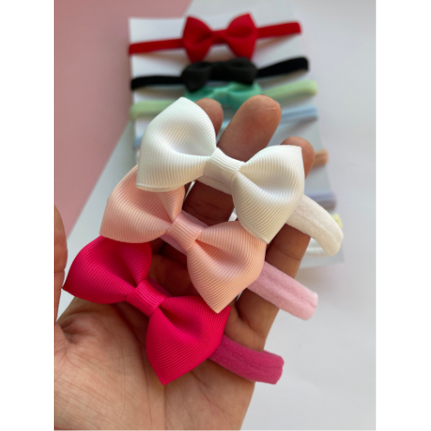 Kit 10 Tiaras e Faixinhas de Cabelo para Bebê Recém-Nascido - Laços Gravatinha em Meia de Seda