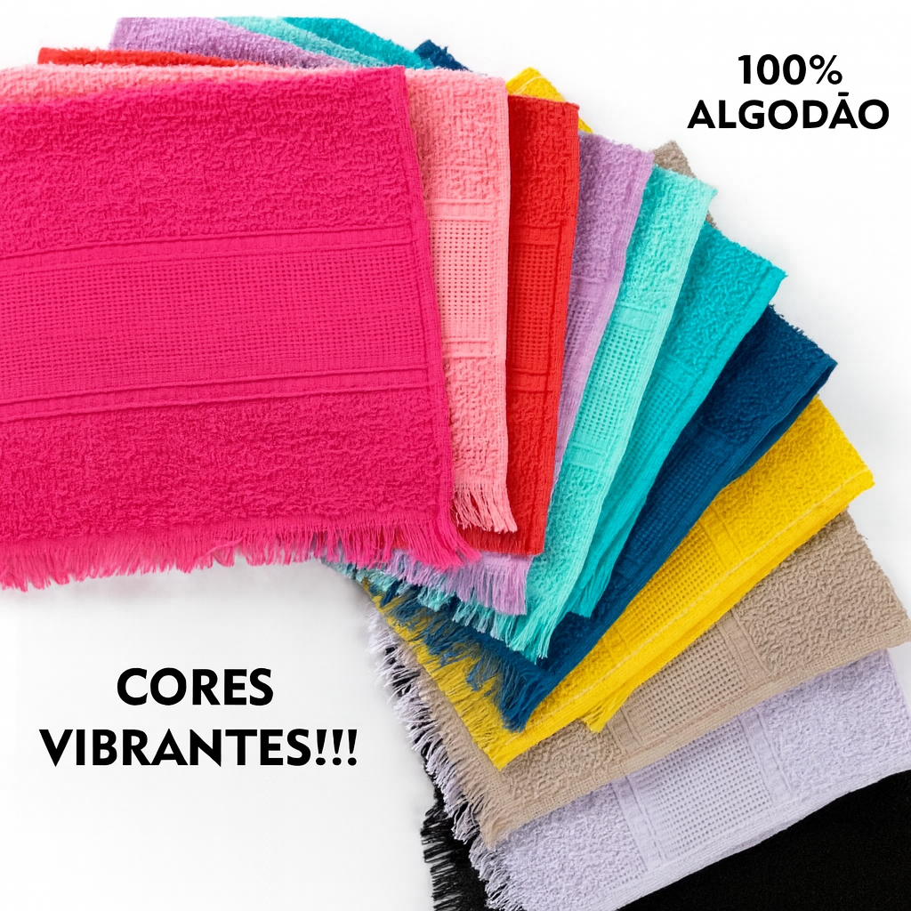 | Kit 10 Toalhas de Mão Social Para Bordar 21x30CM Com Franja 100% Al... este produto | R$ 19,90 | 50% | 4.8/5 | 152 |