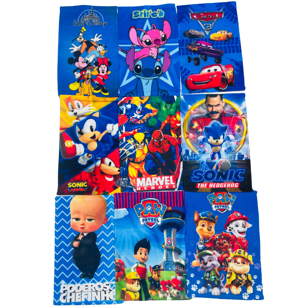 Kit 10 Toalhas Lavabo Escolar Infantil Boca e Mão Personagens 28x42