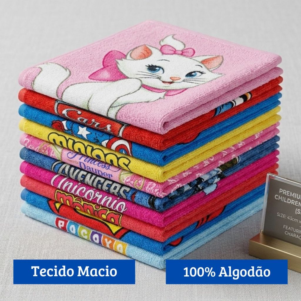 Kit 10 Toalhinhas Infantis de Personagens 100% Algodão para Lavabo ou Lancheira