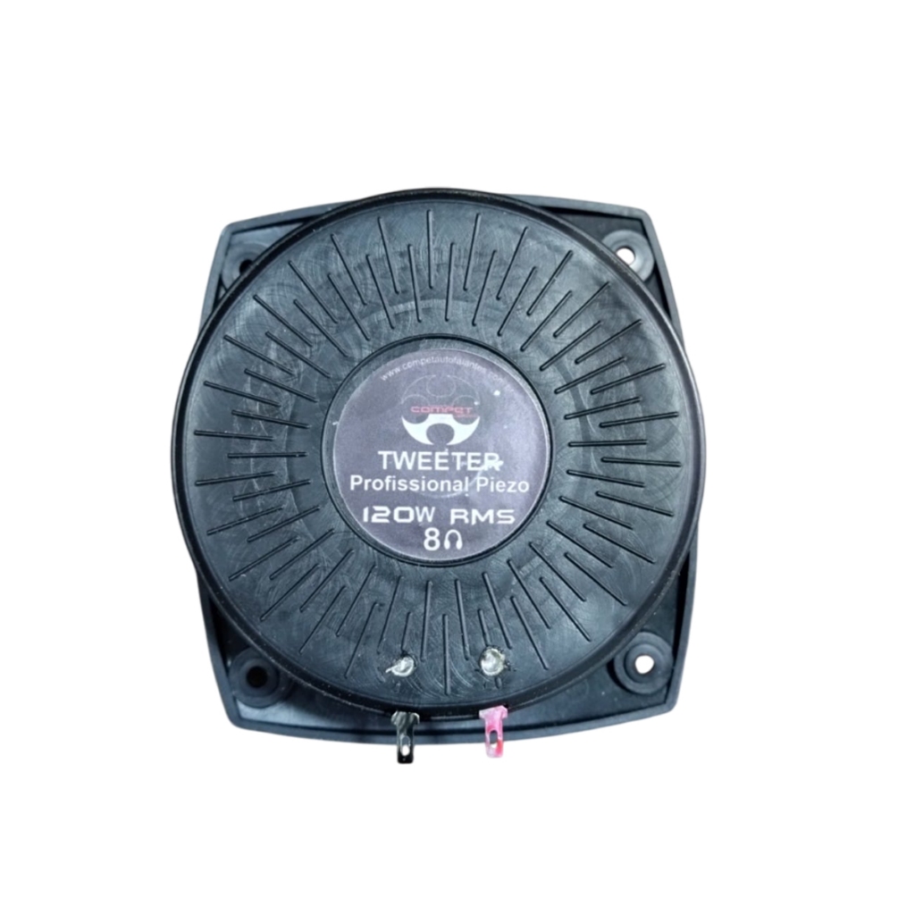 TWEETER PIESO COMPET 120W RMS 8 OHMS TWEETER ELETRICO, NÃO TEM IMÃ. Especificação Técnica: Frequência de resposta: 5-20Khz Sensibilidade: 108dB/SPL Potênca RMS: 120W Potência Musical (PMPO): 300W Impedância Nominal: 8 ohms NÃO TEM CONJUNTO MAGNETICO PRODUTO ORIGINAL OTIMA QUALIDADE