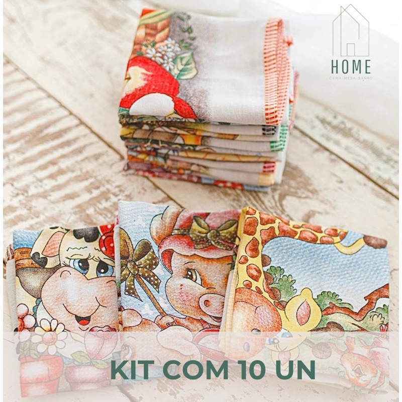 Kit 10 un Pano de Prato Grande com Viés Estampado. EXCELENTE QUALIDADE.