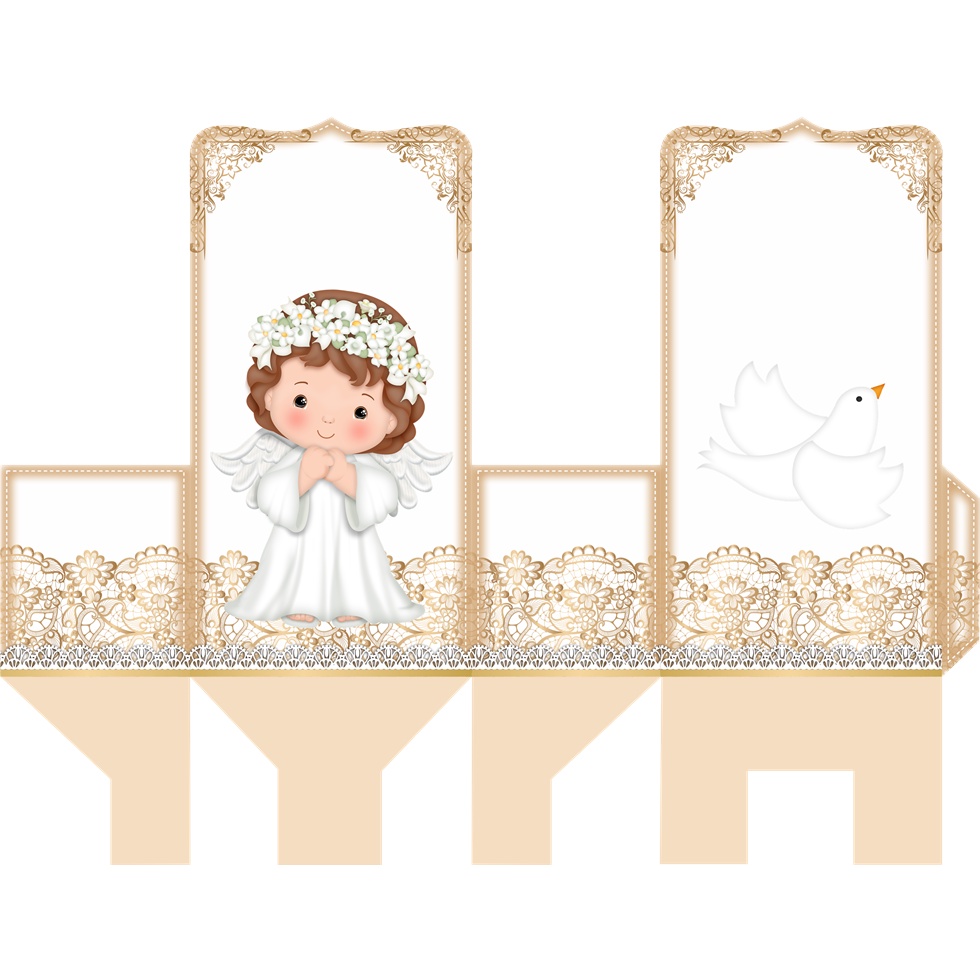 KIT 10 UND. CAIXINHAS PERSONALIZADAS (FOLHA COM ARTE IMPRESSA) TEMA Batizado Menina