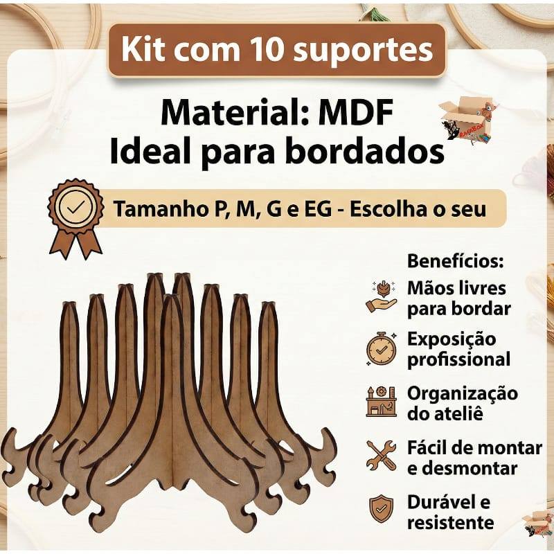 Seja bem-vindo à nossa loja. Agradecemos por sua visita em nosso anúncio. Nós Somos a BH Mania De Brincar Apresentamos o Kit com 10 Unidades do Suporte Expositor Tipo Pezinho, um acessório indispensável para quem busca elegância e praticidade na hora de expor seus trabalhos manuais, coleções ou itens decorativos. Desenvolvido em MDF de alta qualidade com corte a laser preciso, este suporte oferece estabilidade e discrição, garantindo que o destaque principal seja sempre o seu objeto exposto. Este kit é ideal para artesãs que trabalham com bordado em bastidor, colecionadores de pratos decorativos ou para uso em eventos e festas como suporte de fotos e pequenos quadros de mesa. Itens Inclusos no Kit: 10 Unidades de Suporte Apoio Expositor (Pezinho). Você deve escolher entre os tamanhos P/M/G/EG ATENÇÃO: KITS VENDIDOS SEPARADAMENTE, VERIFIQUE EM VARIAÇÕES DO ANUNCIO Obs: Demais produtos nas imagens que não seja o kit de suportes, são meramente exemplicativos. Principais Habilidades e Utilidades: Exposição Profissional: Valoriza o trabalho de bordado em bastidor, permitindo que a peça fique em pé sobre mesas e prateleiras. Versatilidade de Uso: Compatível com pratos decorativos, porta-retratos, pequenos quadros, azulejos personalizados e placas de MDF. Organização Visual: Mantém os itens em um ângulo de visão perfeito para decoração de interiores ou vitrines. Praticidade: Peças leves e fáceis de montar/encaixar, ideais para transporte em feiras de artesanato. Especificações Técnicas: Material: Madeira MDF. Acabamento: Corte tecnológico a laser (sem rebarbas). Modelo: Tipo pezinho / cavalete de mesa. Indicação: Itens de diversos tamanhos (verificar dimensões de abertura). Cor: Madeira natural (MDF Cru 2,5mm ou 3mm conforme disponibilidade). Tamanho P: 10 cm Altura (Ideal para bordados de 08 a 14cm) Tamanho M: 15 cm Altura (Ideal para bordados de 14 a 20cm) Tamanho G: 21 cm Altura (Ideal para bordados de 22 a 30cm) Tamanho EG: 25 cm Altura (Ideal para bordados de 30 a 40cm) É desmontável, vem em duas peças separadas para depois montar. O tamanho especificado no anúncio se refere a altura do suporte Madeira sem farpas Pode pintar sem precisar lixar Lateral escura devido ao acabamento do laser, o que dá um sombreado ao quadro, mas que você pode lixar se preferir O mdf cru é um material natural, por isso a tonalidade pode variar Sobre a Nossa Empresa: Atuamos há mais de 8 anos no comércio eletrônico, oferecendo produtos com nota fiscal e garantia de qualidade. Somos uma empresa consolidada (CNPJ ativo) e focada na agilidade logística. Vantagens de comprar conosco: Postagem Agilizada: Enviamos seu pedido em até 24 horas úteis após a aprovação do pagamento. Emissão de Nota Fiscal: Segurança total para sua compra. Atendimento Especializado: Suporte disponível de segunda a sexta, das 9h00 às 17h00, e aos sábados até o meio-dia. Informações de Envio: Os pedidos são enviados rapidamente por meio de transportadoras parceiras. Em períodos de feriados ou grandes promoções, informaremos você sobre qualquer pequena alteração no prazo, garantindo sempre a transparência no processo de entrega. Observação: A garantia não cobre danos decorrentes de mau uso. Aguardamos sua compra para enviarmos o seu kit de suportes o quanto antes. Suporte bastidor, Apoio prato decorativo, Expositor MDF, Pezinho para quadro, Kit expositor mesa, Suporte bordado livre, Cavalete mini MDF, Porta prato expositor, Suporte bastidor mesa, Kit suporte artesanato, Expositor azulejo, Apoio porta retrato, Suporte placa MDF, Acessório bordado, Decoração mesa festa.