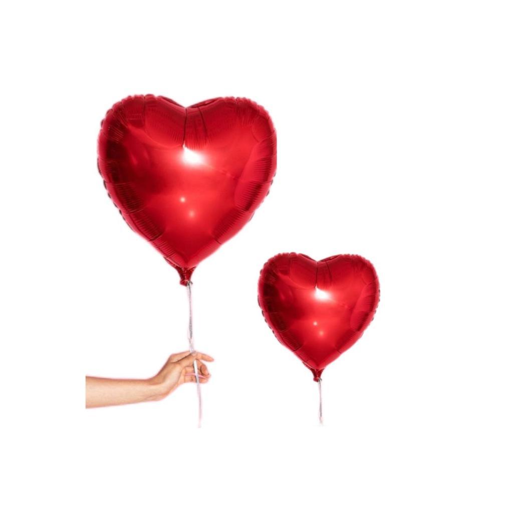 KIt 10 Unidades Balão Coração VERMELHO Metalizado 45cm + Cortina Coração