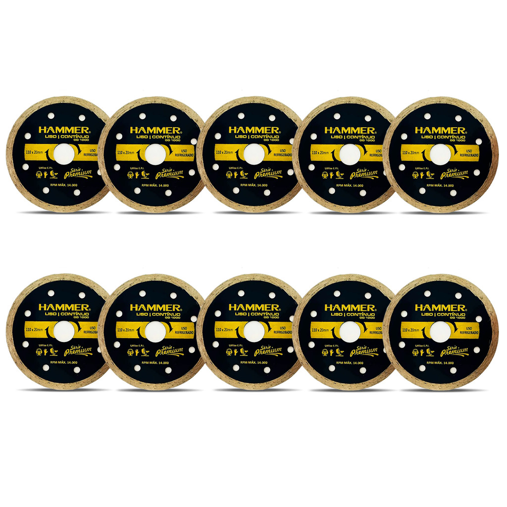Kit 10 Unidades Disco De Corte Diamantado Liso 110 X 20 Mm
