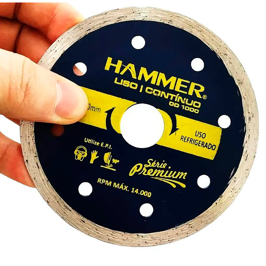Distribuído por Ismafer Ferramentas - Este anúncio acompanha : * 10 Discos Diamantado Liso 110 X 20 mm GYDD1000 - Descrição : * Disco de corte diamantado liso 110 x 20 mm * Indicado para segurar peças planas e cilíndricas, cortar e desencapar fios * Ideal para serrar mármore, granito, azulejos, cerâmicas e etc. - Informações Técnicas : * Marca : Hammer * Modelo : DD 1000 * Diâmetro externo do disco de corte diamantado : 110 mm * Diâmetro do furo do disco de corte diamantado : 20 mm * Espessura do corpo do disco de corte diamantado : 1,2 mm * Tipo de corte do disco de corte diamantado : Refrigerado * Espessura da camada de diamante : 1,8 mm * Altura da camada de diamante : 5,0 mm * Perfil do corte : Anel contínuo * Rotação máxima ( rpm ) : 14000 rpm * Peso bruto : 85g - Sku : KIT16631-10 Distribuído por Ismafer Ferramentas