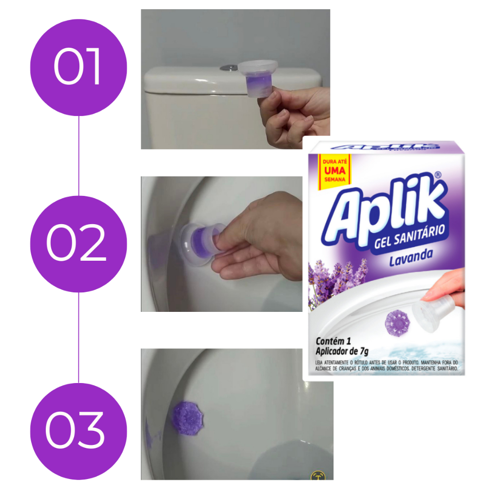 Gel Adesivo Sanitário Aplik 7g – Limpeza, Perfume e Praticidade para o Seu Banheiro O Gel Sanitário Aplik é ideal para manter o vaso sanitário limpo, higienizado e perfumado diariamente. Com aplicação simples e prática, forma uma película adesiva que libera fragrância a cada descarga, garantindo sensação de limpeza contínua. Benefícios do Produto: Limpeza contínua a cada descarga Perfuma o ambiente de forma prolongada Fácil aplicação, sem necessidade de suporte Ajuda a evitar maus odores Produto higiênico, sem contato direto Características: Kit com 10 unidades da Fragrância escolhida Conteúdo: 7g (unitário) Tipo: Gel adesivo sanitário Aplicação direta no vaso Indicado para uso doméstico e comercial Fragrâncias Disponíveis: Lavanda Floral Limão Eucalipto Pinho Marine Envio conforme disponibilidade em estoque ou conforme variação escolhida no anúncio. Modo de Uso: Pressione o aplicador na parte interna do vaso sanitário e fixe o gel na lateral. A cada descarga, o produto será ativado, liberando limpeza e fragrância. Indicação de Uso: Ideal para residências, escritórios e banheiros com alto fluxo de uso.