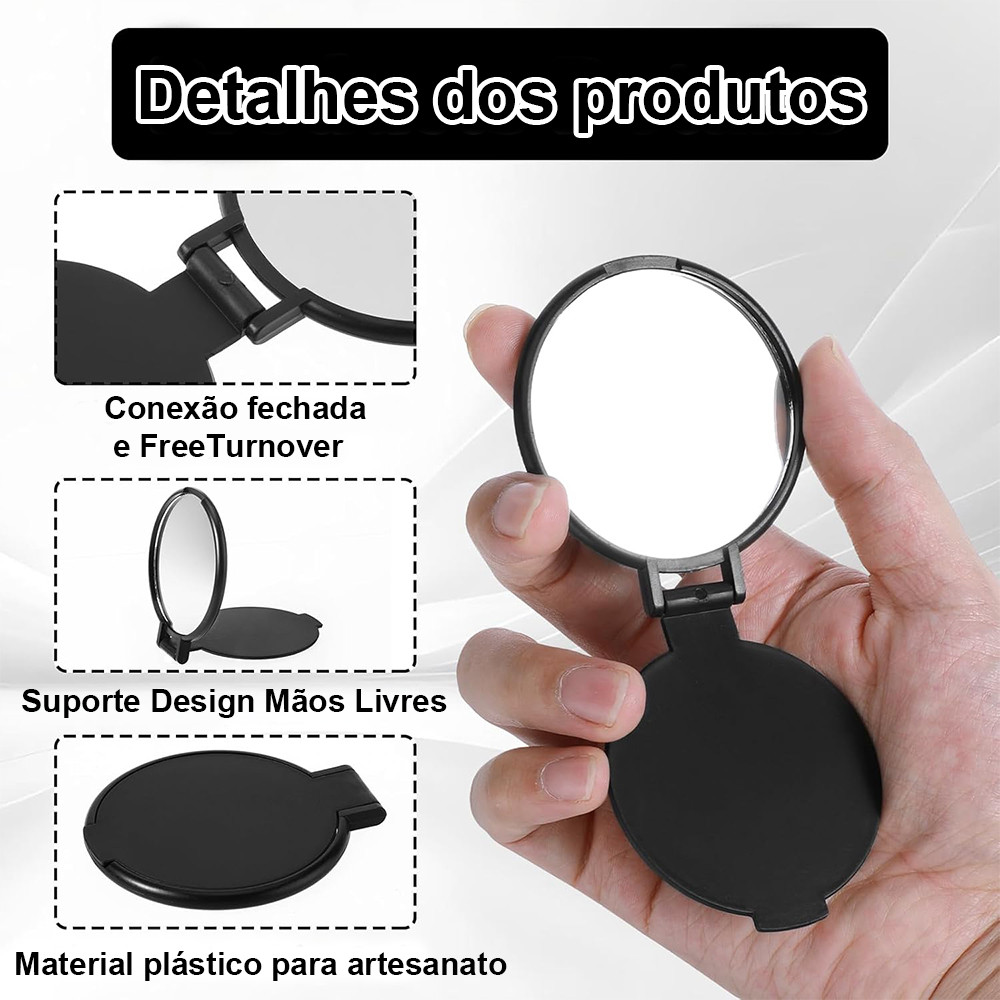 Kit 10 Unidades preto Espelho de Bolsa Espelhinho para Maquiagem Redondo 6.2x7cm