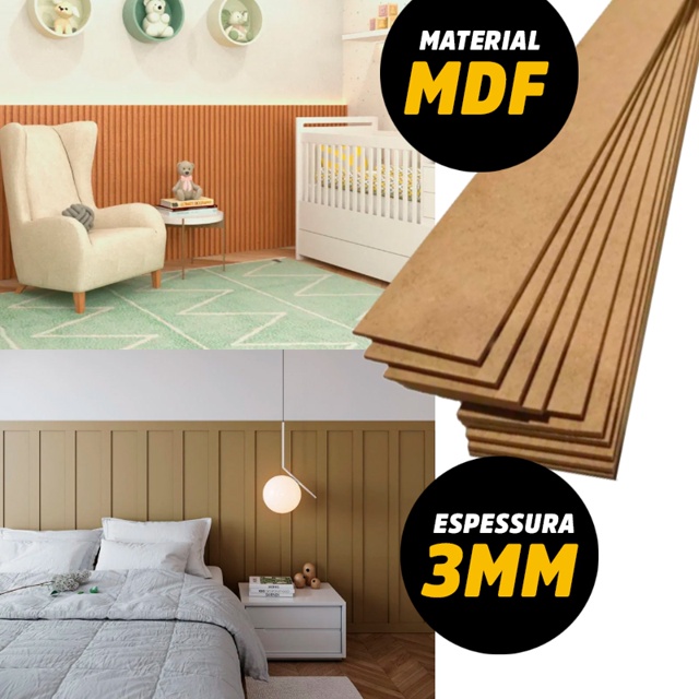 | Kit 10 Unidades Ripado Chapa RIPA Mdf Cru 3mm Placa 5x100 cm para B... este produto | R$ 22,90 | 54% | 4.9/5 | 123 |