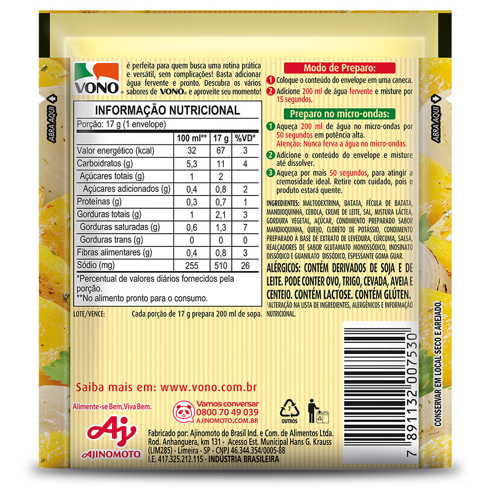 Kit 10 Unidades Sopas Cremosas VONO® Individual Sabor Mandioquinha com Cebola e Salsa 17G
