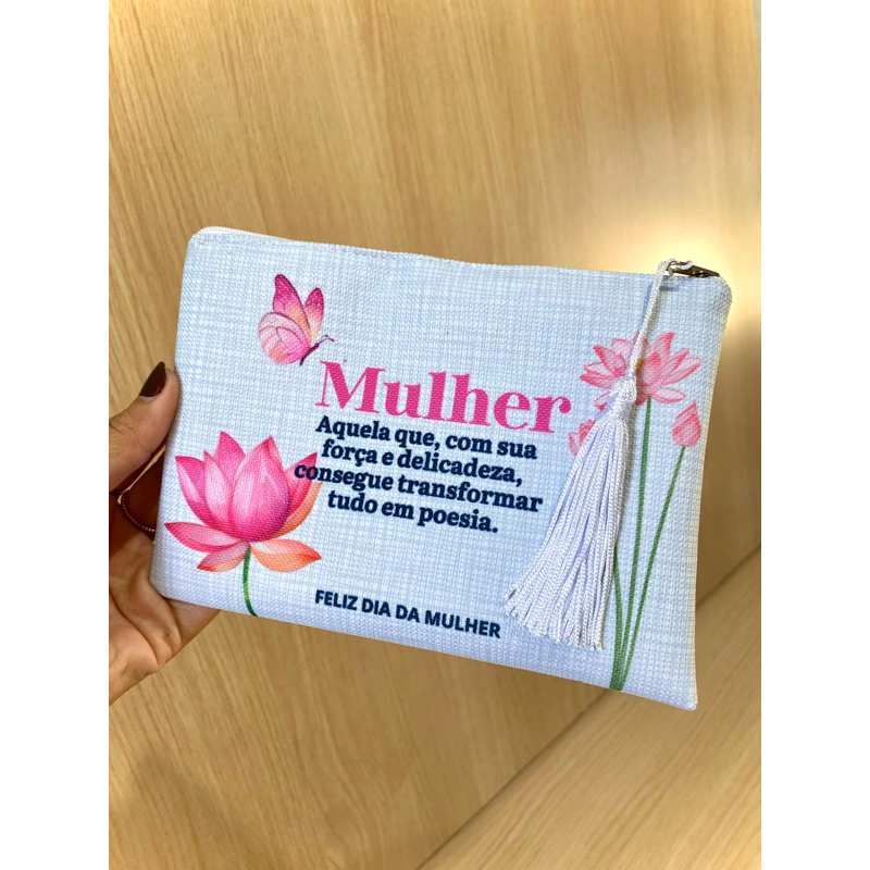 KIT 10 UNIDS Necessaire bolsinha Dia da Mulher Personalizada Floral Delicada Lembrancinha Feminina Presente Especial