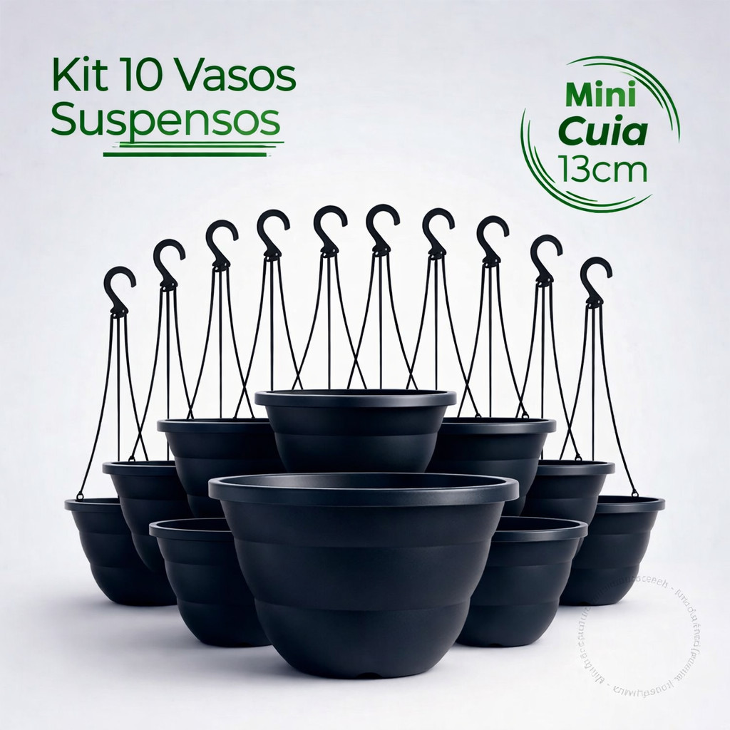 Kit 10 vasos cuia 13 com haste alça Preto para Plantas, Cactos e Suculentas