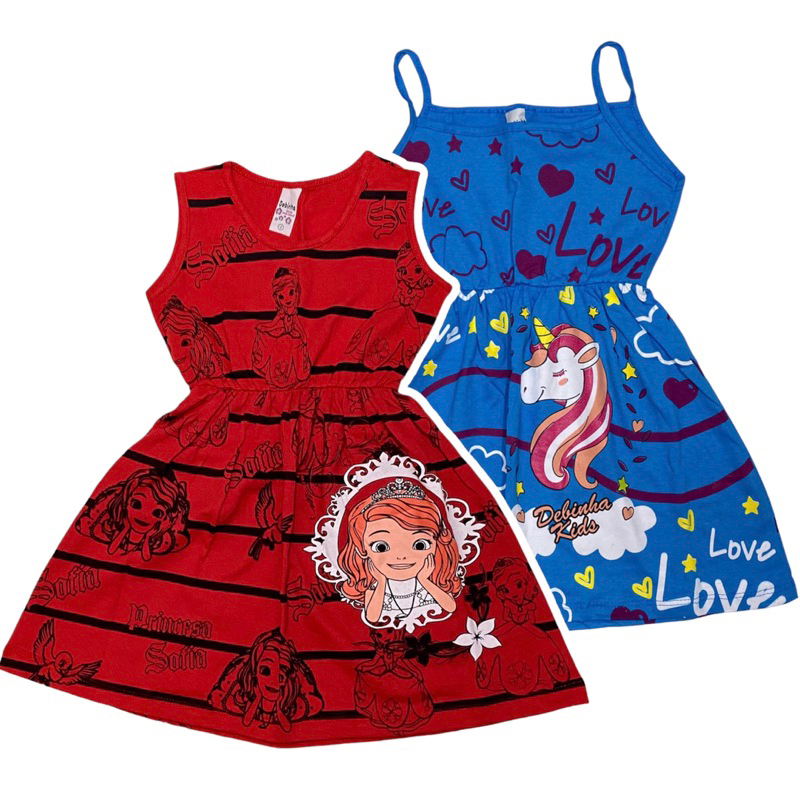 KIT 10 VESTIDOS INFANTIL MENINA PERSONAGEM DE 0 A 5 ANOS 100% ALGODÃO FIO 30, EXCELENTE QUALIDADE.