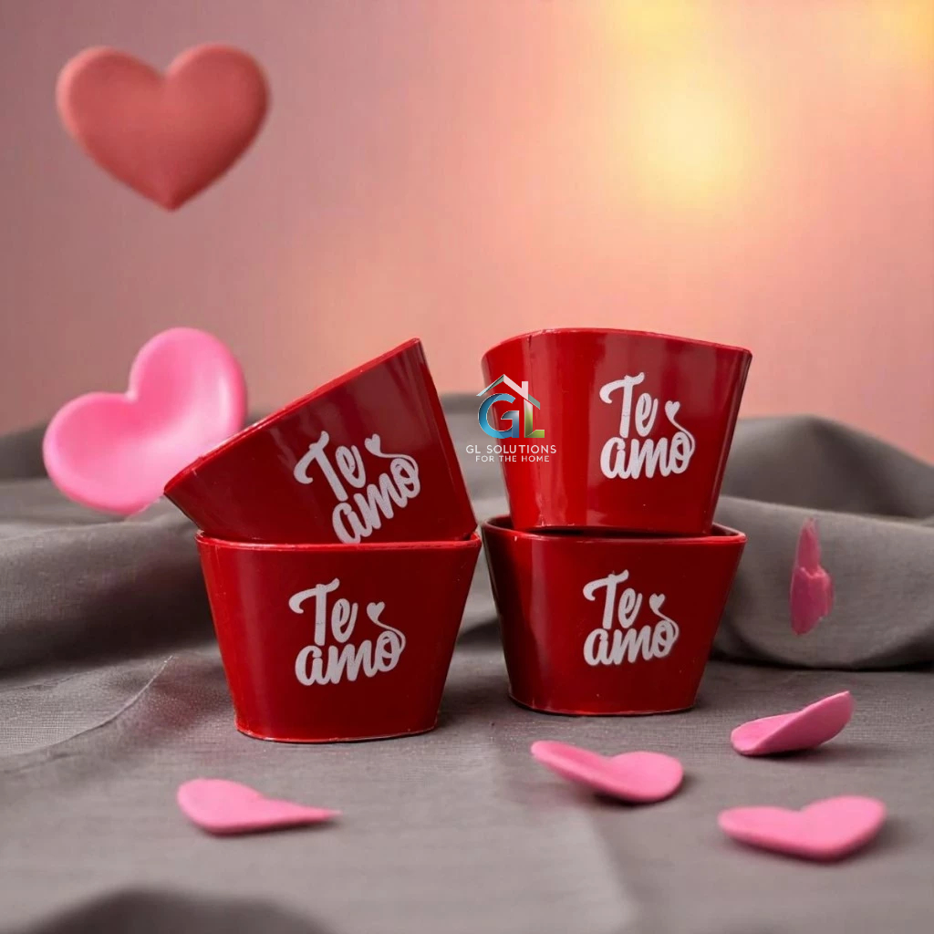 Kit 10 Xícaras Coração Te Amo vermelha plástico acrílico Dia dos Namorados amor presente café fofo