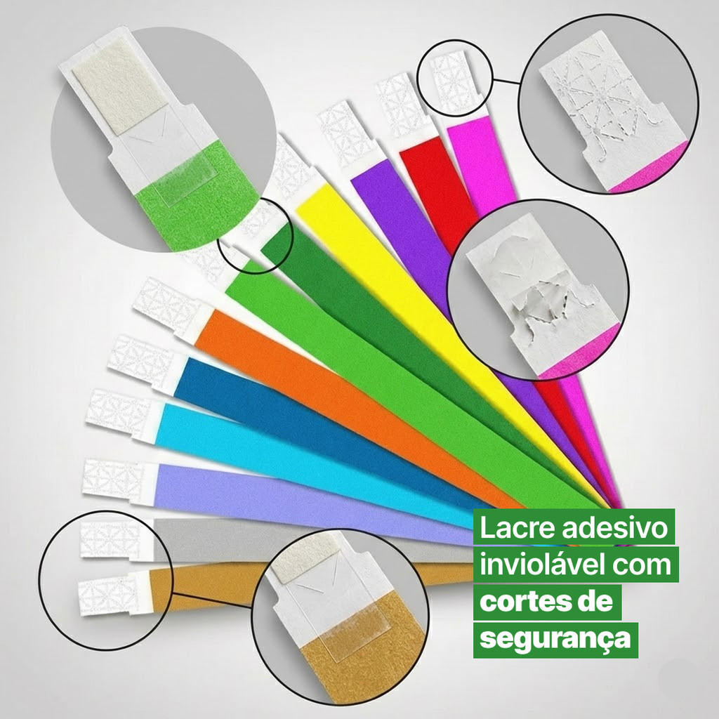 Kit 50 / 100 / 200 / 300 Pulseiras de identificação para Eventos Festas Shows Baladas Aniversários Casamentos ID Tag Distribuidor autorizado Produto testado e aprovado Envio imediato Alta durabilidade A Pulseira de Identificação é ideal para controle de acesso, organização de eventos e separação de públicos de forma prática e segura. Fabricada com papel e PP, é à prova d’água, possui lacre inviolável e acabamento superior, garantindo mais segurança e profissionalismo para seu evento. Aplicações comuns: Eventos e festas Controle de acesso Shows e festivais Casas noturnas e bares Buffets e eventos infantis Identificação de convidados e áreas restritas Especificações: Material: Papel e PP Quantidade: Kit com 50, 100, 200 e 300 unidades Medidas: 1,9 x 25 cm Cores: Escolha no campo COR de acordo com disponibilidade entre: verde, amarelo, azul, pink, roxo, laranja, prata, dourado, branco e preto (vendidas em pacotes com 100 unidades da mesma cor). Formato: Folhas com micro serrilha Lacre: Adesivo com cortes de segurança anti-violação Características: ✅ À prova d’água e de alta durabilidade ✅ Lacre adesivo inviolável com cortes de segurança ✅ Fácil aplicação e ajuste ao pulso ✅ Ideal para controle e organização de eventos ✅ Acabamento superior às pulseiras convencionais Atenção: ⚠️ Não realizamos impressão personalizada. ⚠️ Pode ser utilizada impressora a laser. ⚠️ Impressão com tinta comum não é recomendada para contato com água. ⚠️ Pacotes vendidos com 100 unidades da mesma cor. FAQ: As pulseiras são à prova d’água? Sim, fabricadas papel resistente a agua Posso escolher a cor? Sim, a escolha é feita no campo COR, conforme disponibilidade de estoque. Posso imprimir nas pulseiras? Sim, utilizando impressora a laser. Impressão a tinta comum não é recomendada. Vem cores misturadas? Não. Cada pacote contém 100 unidades da mesma cor. Em caso de dúvidas, envie uma mensagem pelo chat. Estamos prontos para te ajudar!