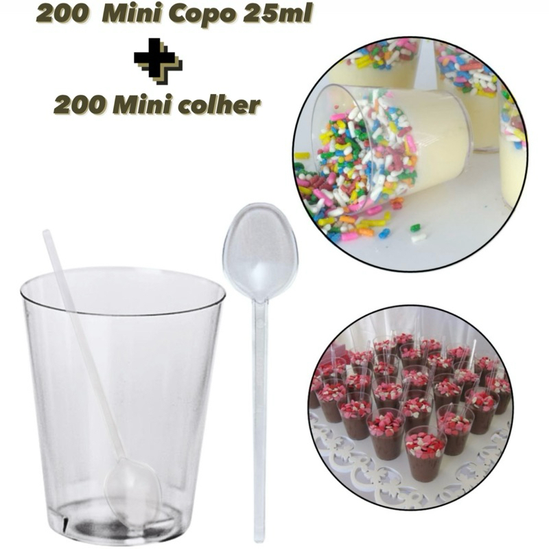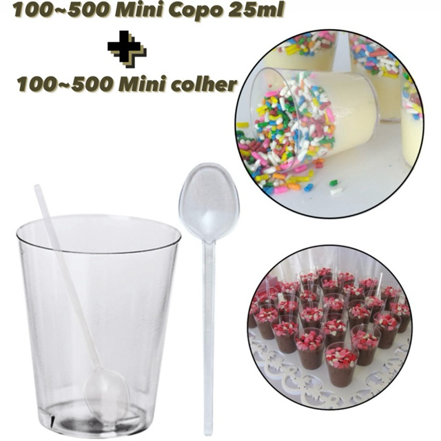 KIT 100~500 COPINHO 25 ML BRIGADEIRO ACRÍLICO + 100~500 MINI COLHER CRISTAL BRIGADEIRO DE COPO MINI COPINHOS