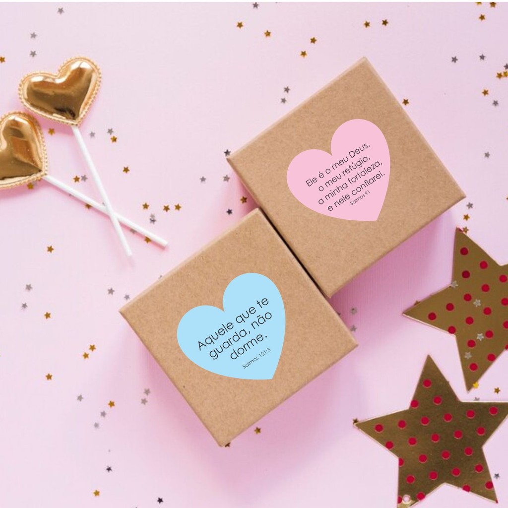 KIT COM 5 MODELOS DE ADESIVOS COM FRASES BÍBLICAS E CORES EM FORMA DE CORAÇÃO DIFERENCIADAS UMA FORMA DELICADA E CARINHOSA DE AGRADECER SEUS CLIENTES. Quantidade: 100 unidades Medida: 4x4cm Material: Papel Auto Adesivo Brilho Formato: Recorte especial de coração *Os tons das cores durante o processo de impressão podem ter uma variação de até 10% para mais ou para menos. Telas de celulares e computadores realçam as cores das arte O KIT VAI COLORIDO. NÃO É POSSIVEL ENVIAR UMA ÚNICA COR.