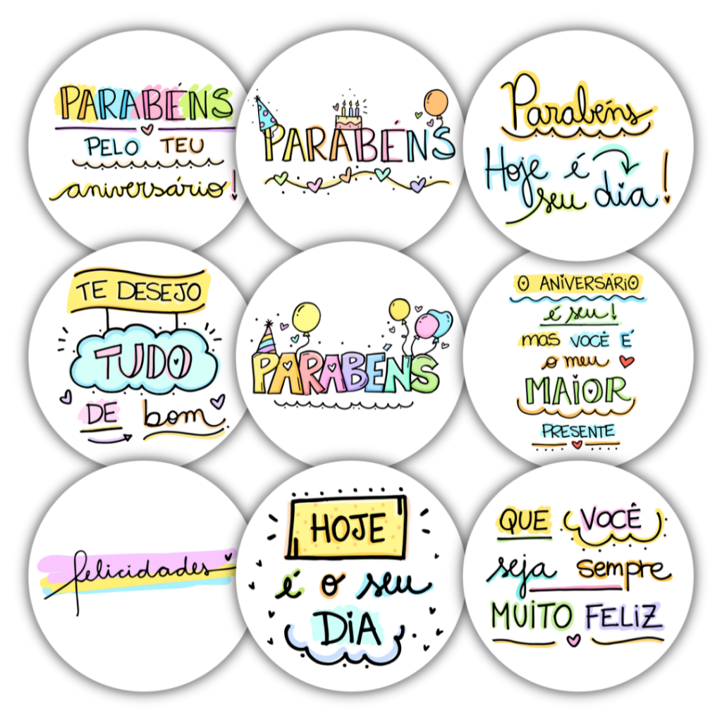 Kit 100 Adesivos Feliz Aniversário Parabéns Presente Embalagem Cliente