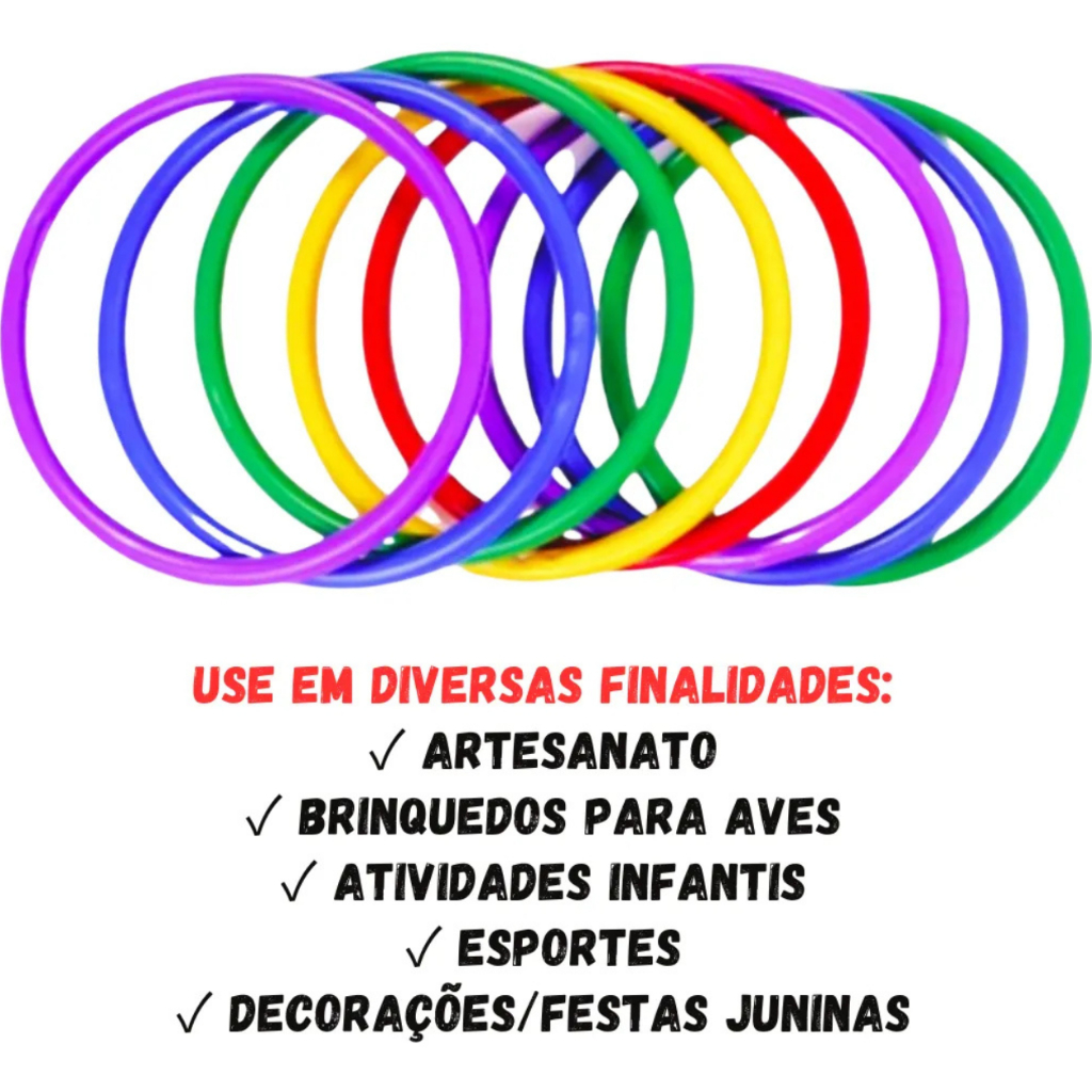 KIT 100 Argolas Colorida De Plástico Festa Junina Brincadeira Arremesso Prenda