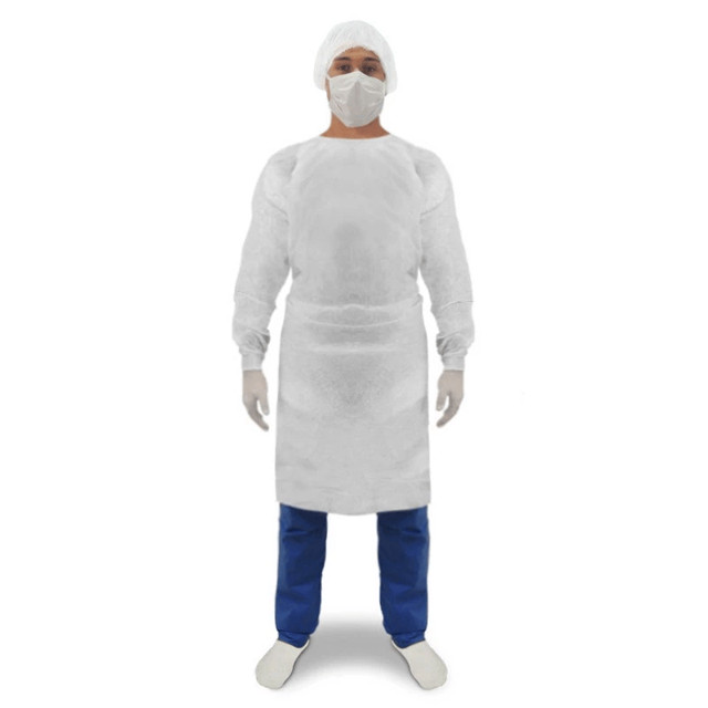 Kit 100 Avental Descartável TNT Gramatura 20 100 Unidades Capote G20 Manga Longa - Branco Jaleco
