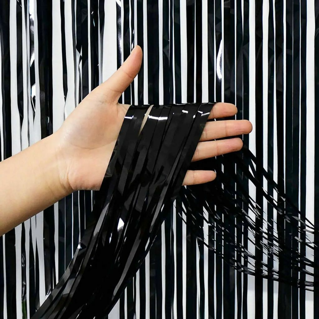Kit 100 Balão Latex e Cromado Preto Vermelho Cromado + Cortina Metalizada Decoração Aniversário
