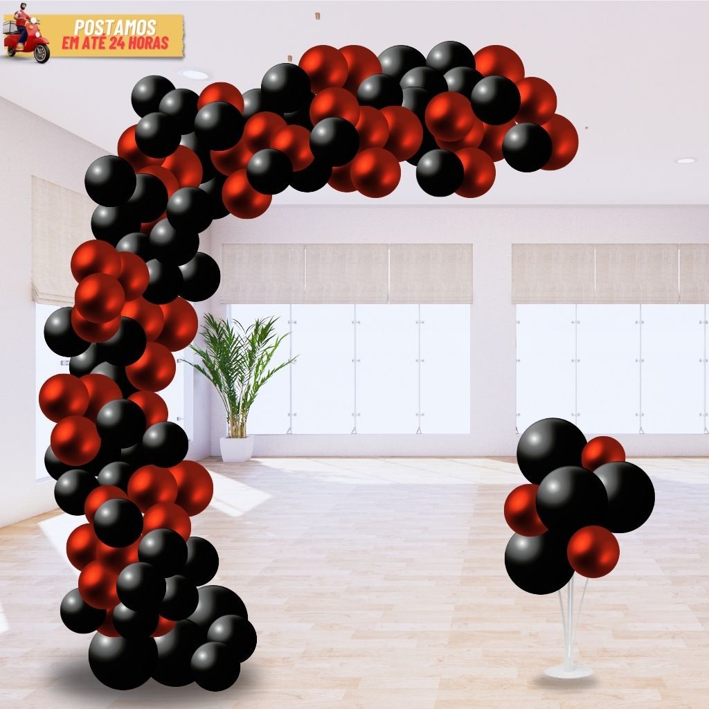 Kit 100 Balão Latex e Cromado Vermelho Croma e Preto + Cortina Metalizada Decoração Para Aniversário