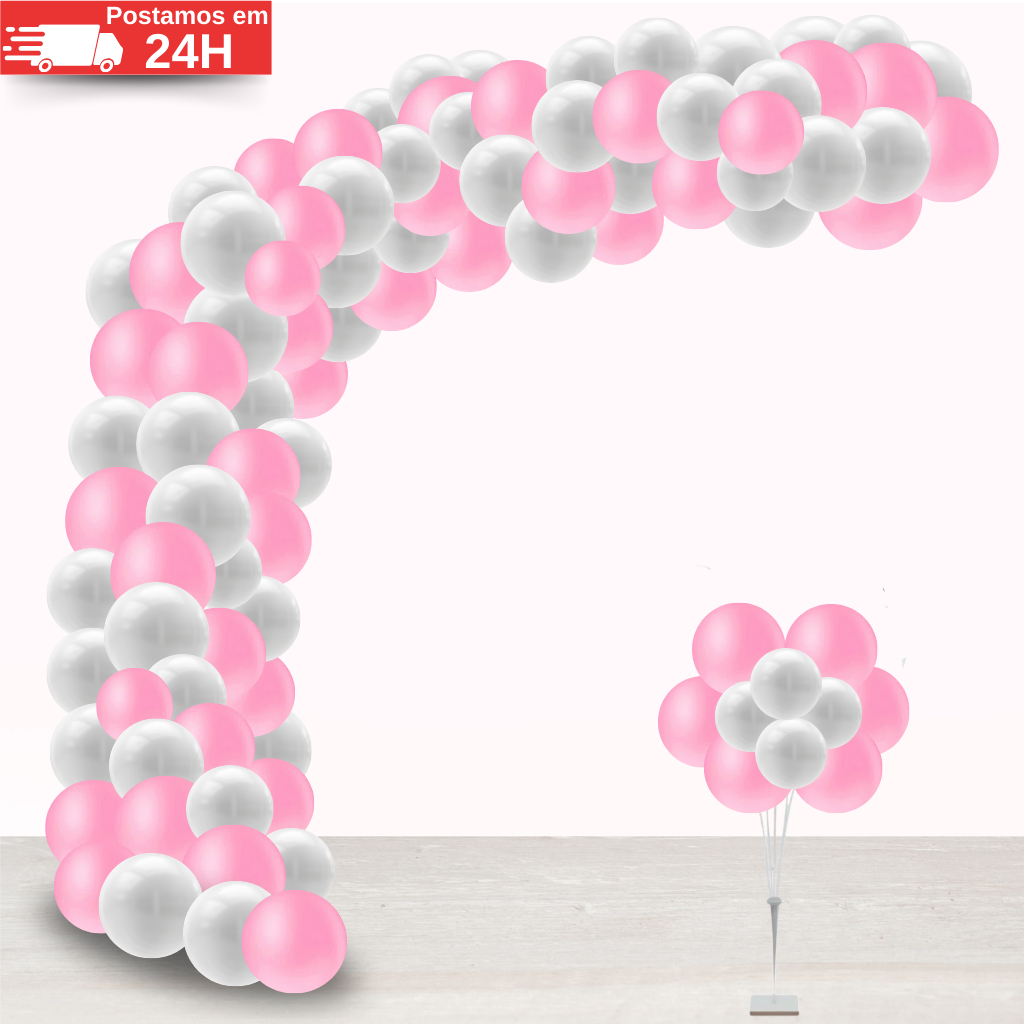 Kit 100 Balões Rosa + Branco - Balão Bexiga Liso Para Festas e Aniversários