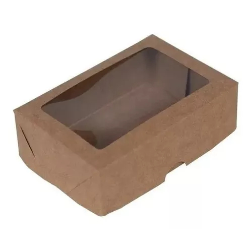 Kit 100 Caixas KRAFT 6 doces com visor 11x7x3 cm. Embalagem para doces, presentes e artesanatos.