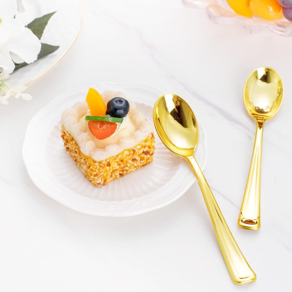 Kit 100 Colheres Refeição Descartáveis De Luxo Dourado/Elegante Pacote de Colheres Descartáveis