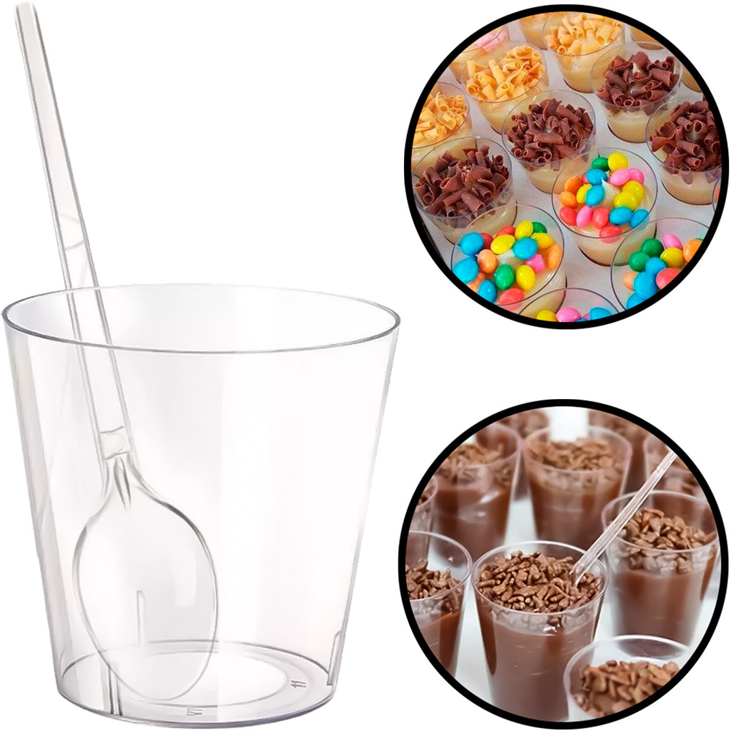 Kit 100 Copinho Potinho Copo Tacinha 25ml Brigadeiro Docinho Doces Musse + 100 Colheres