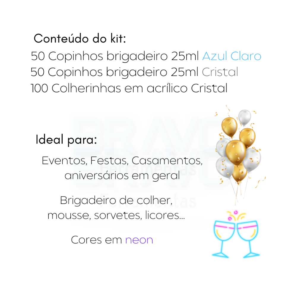 Kit 100 Copinhos 25ml Brigadeiro Transparente e Azul + 100 Colherezinhas