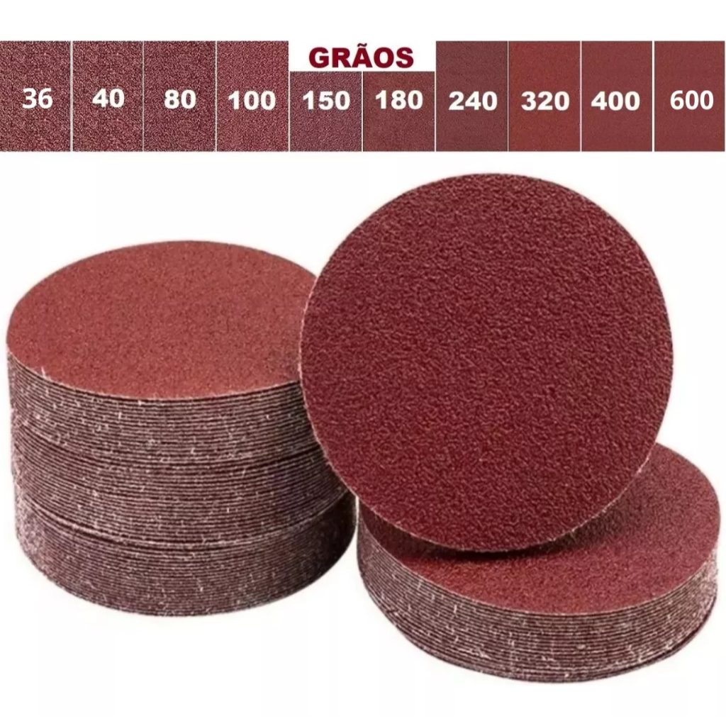 Kit 100 Discos Lixa Pluma 125mm Com Velcro (5'') Para Lixadeira Roto Orbital - Vários Grãos