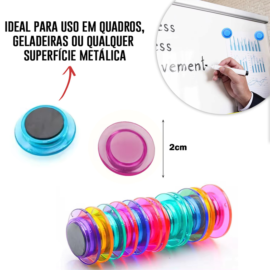 Kit 100 Imã Decorativo Colorido Redondo Coração Para Mural Fotos Geladeira Quadro Branco Recado
