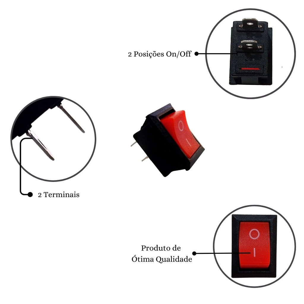 Kit 100 Interruptores Chave tic tac Kdc 2 Term. OnOff 2 Posi. Liga Desliga Botão Gangorra KCD1-101 VM