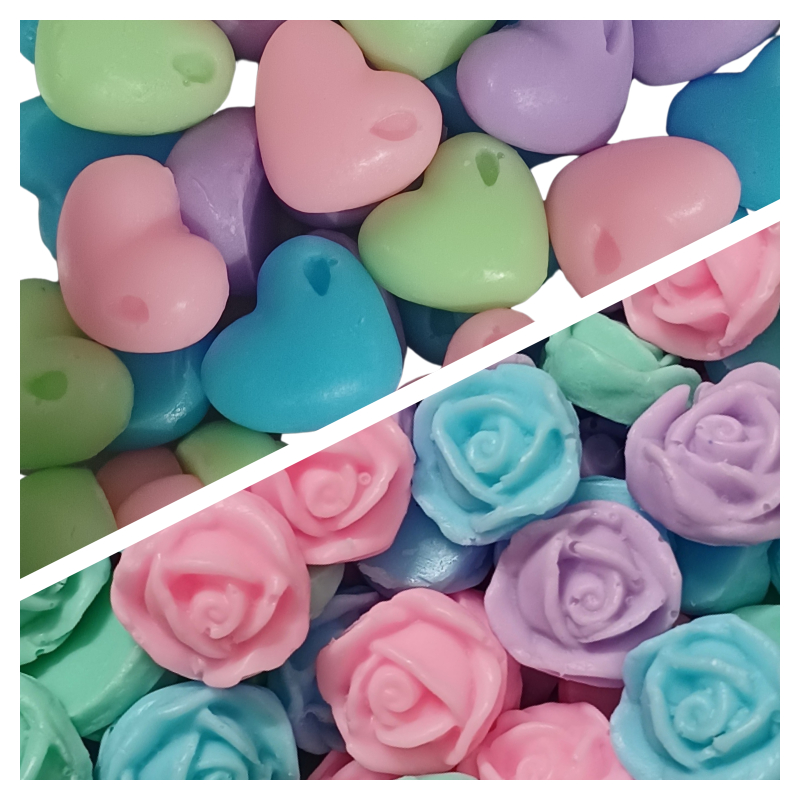 kit 100 Mini Sabonetes Perfumado 50 Florzinha + 50 Coração lembrancinha Escolher cores aroma chat