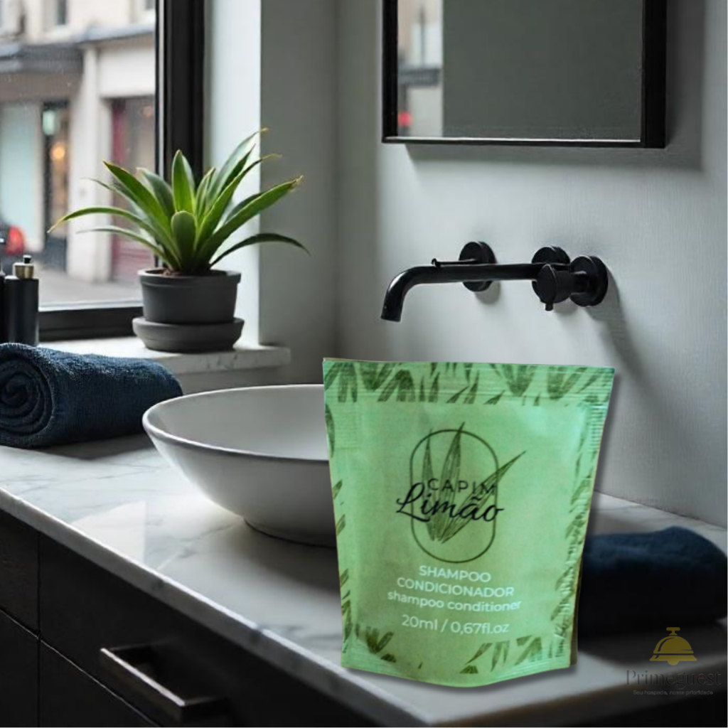 Kit 100 Mini Shampoos 2x1 Capim limão 20 ml REALGEMS – Pousada, Hotel, Motel, Hospital, Airbnb, Spa