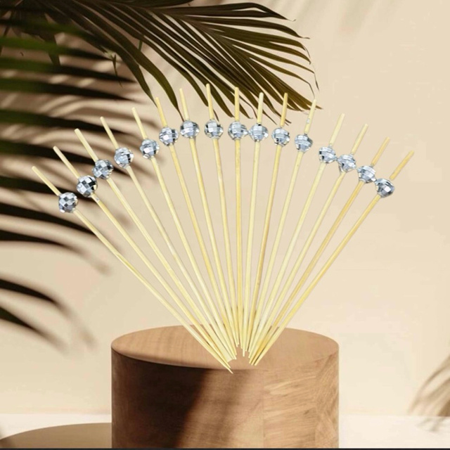Kit 100 Palitos de Bambu Para Petisco Decorado globo Prata 12cm