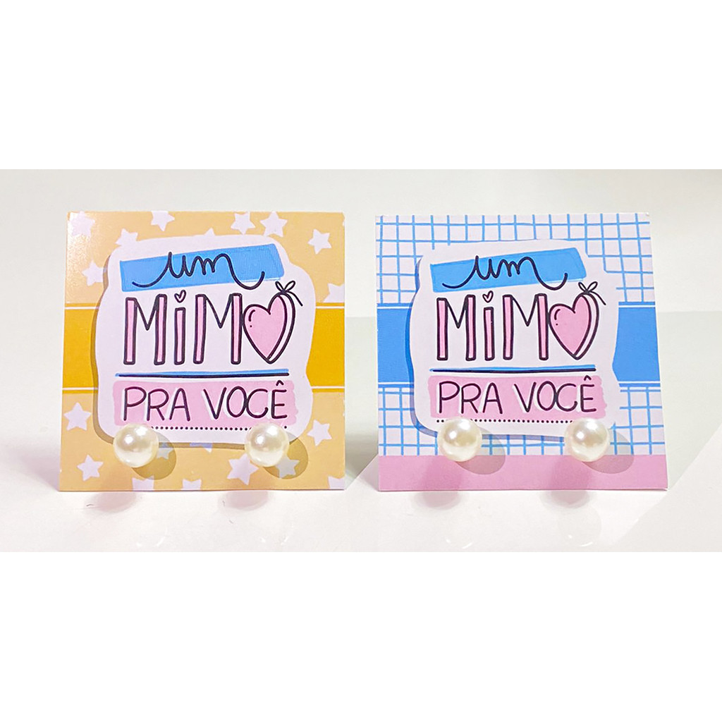 Kit 100 pares Brinco Pérola + Tag Mimo / Lembrancinha Cliente / Casamento/ Aniversário