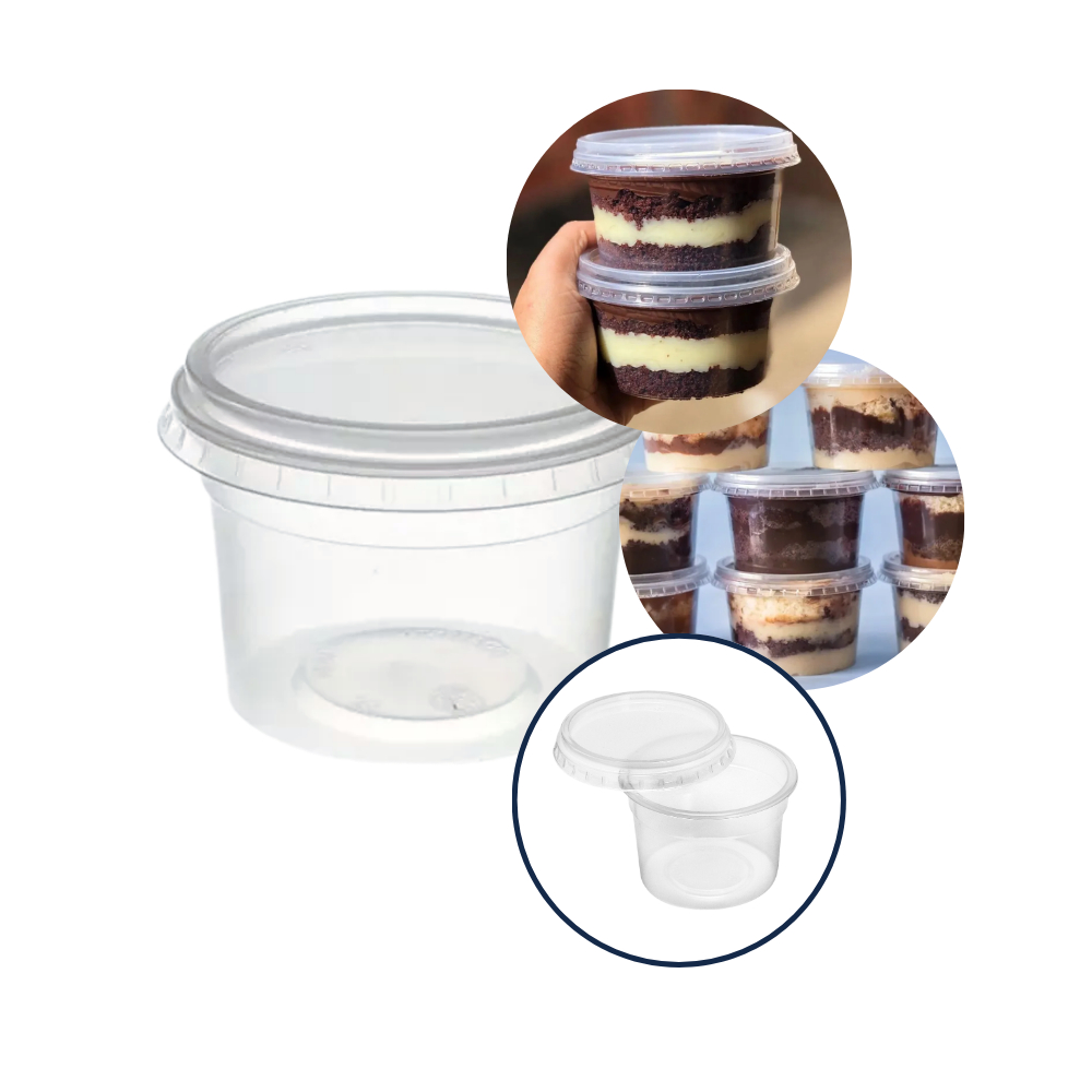 Kit 100 Potes Redondos 250ml Com Tampa E 100 Colheres de Sobremesa Transparente e Descartável Oferta