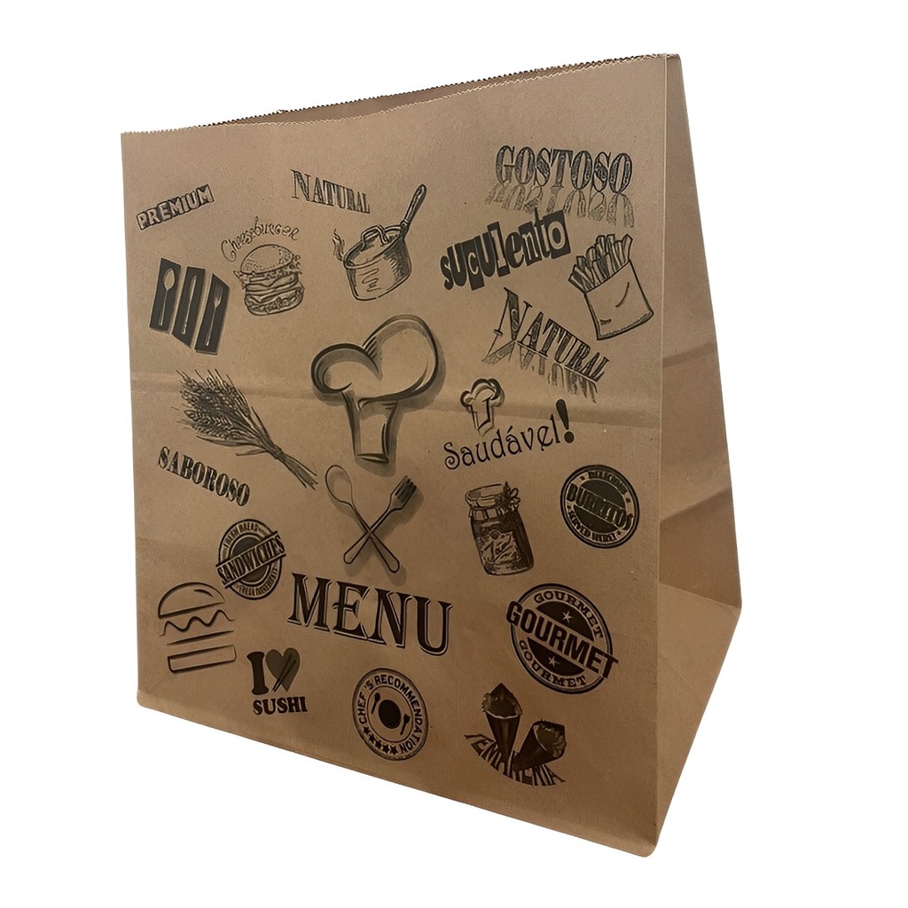 KIT 100 Saco Papel Kraft Delivery Tam G 32x30x19 Atacado