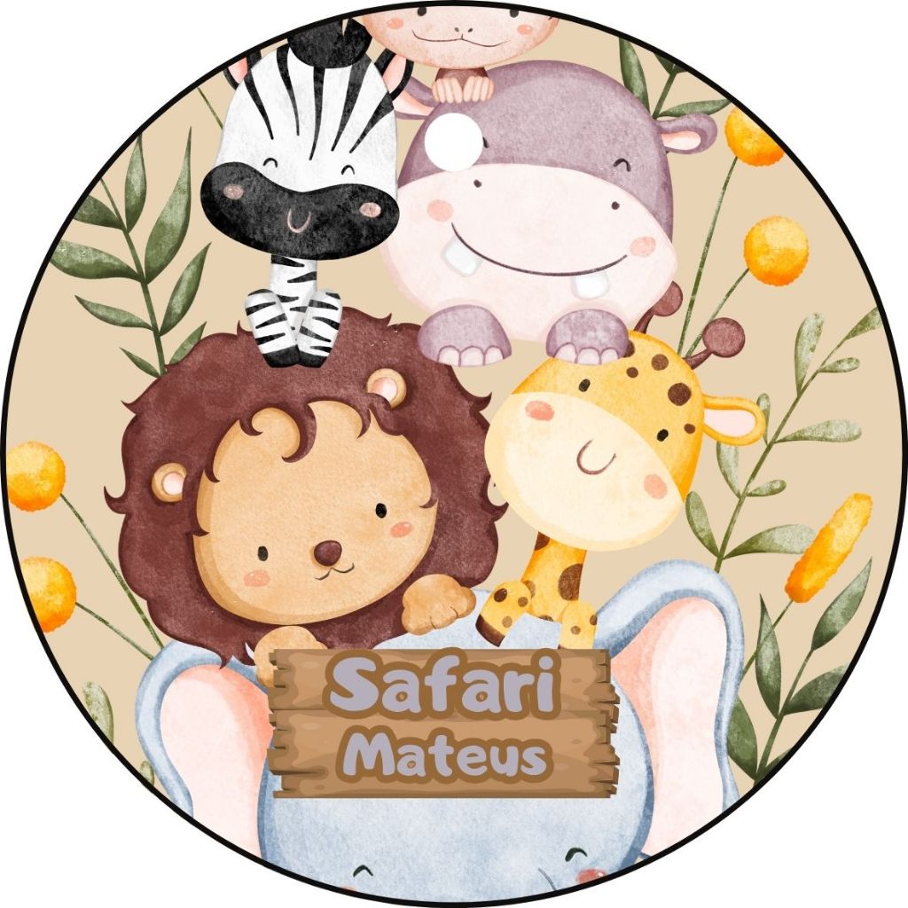 Kit 100 tags Personalizados redondo Safari para Sacolas e Lembrancinhas de Anivérsario