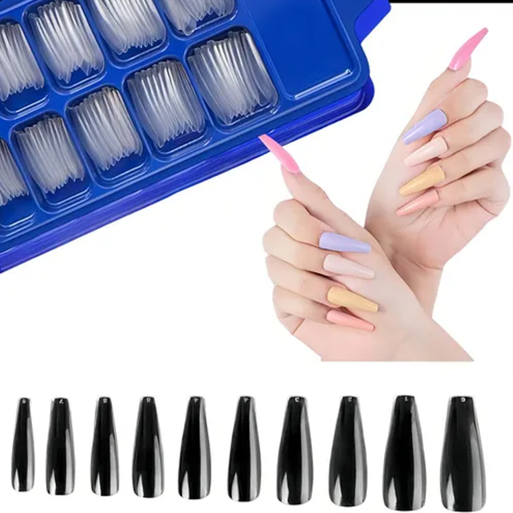 Kit 100 Unhas Postiça Bailarina Fina Realista Transparente Leitosa