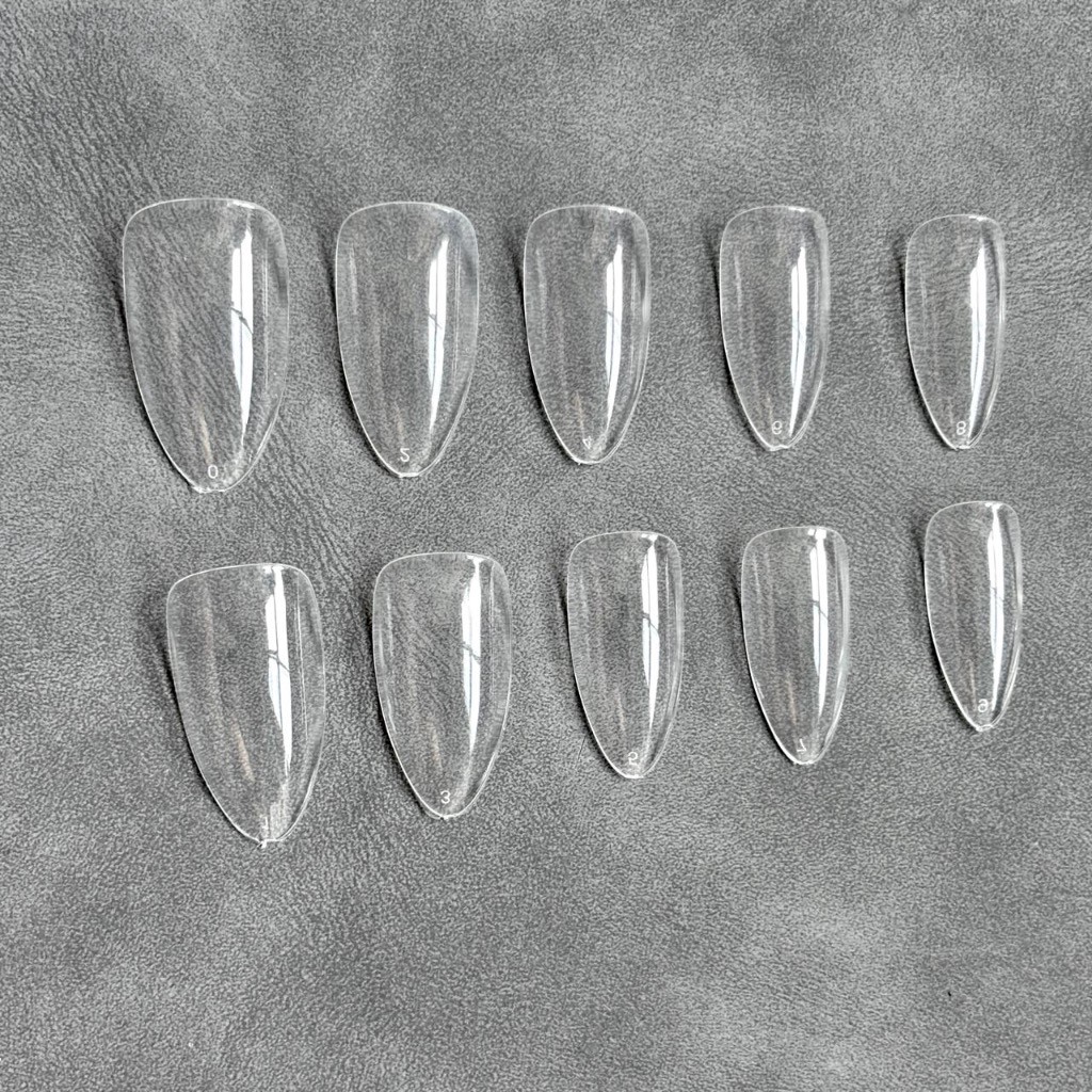 Kit 100 unhas postiças Amendoada Gota d'águaLeitosa Transparente HM-0181