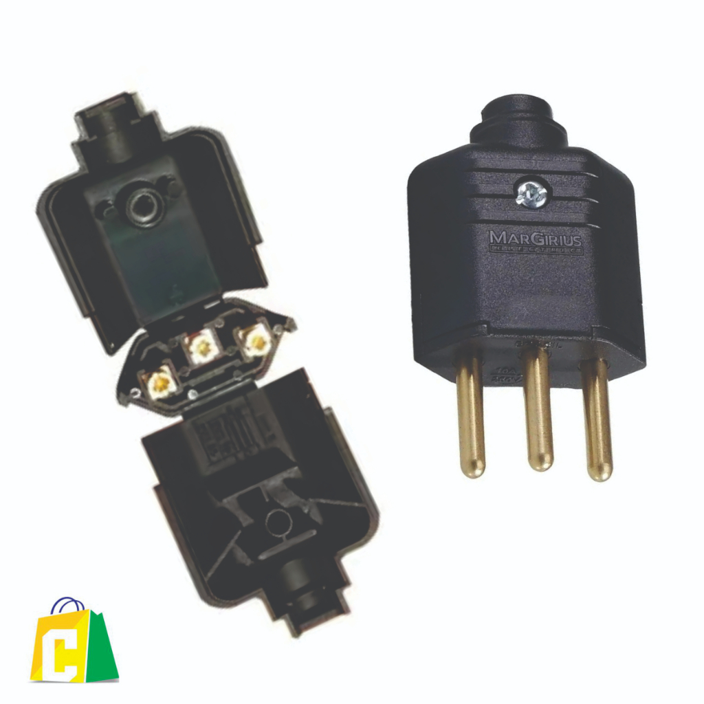 5 Tomada Femea E 5 Plugue Macho Com 3 Pinos 10a Preto Margirus Os plugues desmontáveis da MarGirius são utilizados em equipamentos eletroeletrônicos e instalações elétricas em geral.Resistentes e com excelente acabamento, são compatíveis com diversos tipos de cabos (paralelo, PP plano e PP circular).Para facilitar a instalação, o decape e desponte adequados são marcados no próprio produto. Também evitam a queda do parafuso durante a desmontagem. CARACTERÍSTICAS:-Corpo em material termoplástico de alta qualidade;-Pinos e contatos em latão;-Ligação dos condutores através de bornes parafusados;-Capacidade elétrica: 10A em tensões de até 250V~;-Produtos Certificados pelo INMETRO no requisito de SEGURANÇA pelo organismo de certificação Bureau Veritas (BV) - OCP0018;-Atendem ao padrão brasileiro de plugues e tomadas (NBR 14136). -Conteúdo da Embalagem: - 05 Plugue macho desmontável 3 Pinos de 10A - 05 Tomada Fêmea desmontável 3 Pinos de 10A Nuvem de Tags: 10a, Plugue, Tomada, Tomada Desmontavel, Plug, Plugue Macho, Plug Macho, Tomada Macho, Margirius, 2 Polos, 2p+t, Para Estenssão, Para Rabicho.