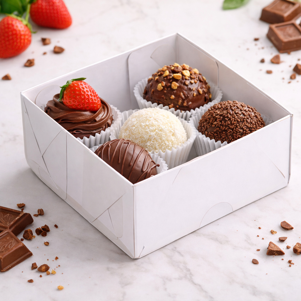 Kit 10un Caixa de Papel Quadrada e/ou Retangular com Tampa Transparente Sem Berço | Doces e Bombons