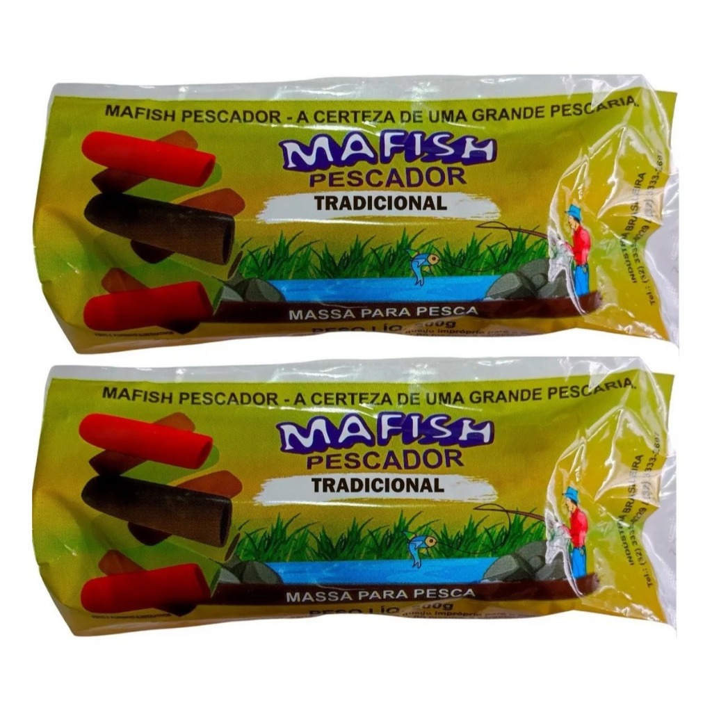 KIT COMPOSTO POR 10un MAFISHS 200GR Considerada por muitos uma isca indispensavel na pesca de grandes peixes, tanto em pesqueiros quando em ambientes naturais, as massas mafish já vão prontas para uso. A MAFISH conhecida no Brasil todo por seu forte cheiro atrativo para capturas de grandes peixes como, pacu, tambaqui, piau, matrinchã, dourado,pintado dentre outras espécies. Uma marca renomada no mercado de pesca esportiva com qualidade premium e eficácia comprovada. Perfeita para todos os níveis de habilidade na pesca, é a escolha ideal para pescadores de todos os níveis, do amador ao profissional. Enriqueça sua experiência em pesca com a Mafish. Adquira agora e sinta a diferença que a qualidade Mafish pode fazer em sua próxima aventura de pesca! Advertência Importante: Este produto não é adequado para o consumo humano.
