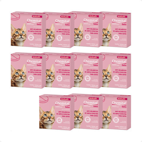 Kit 11 Chemital Chemitec Vermífugo para Gatos - 4 Comprimidos