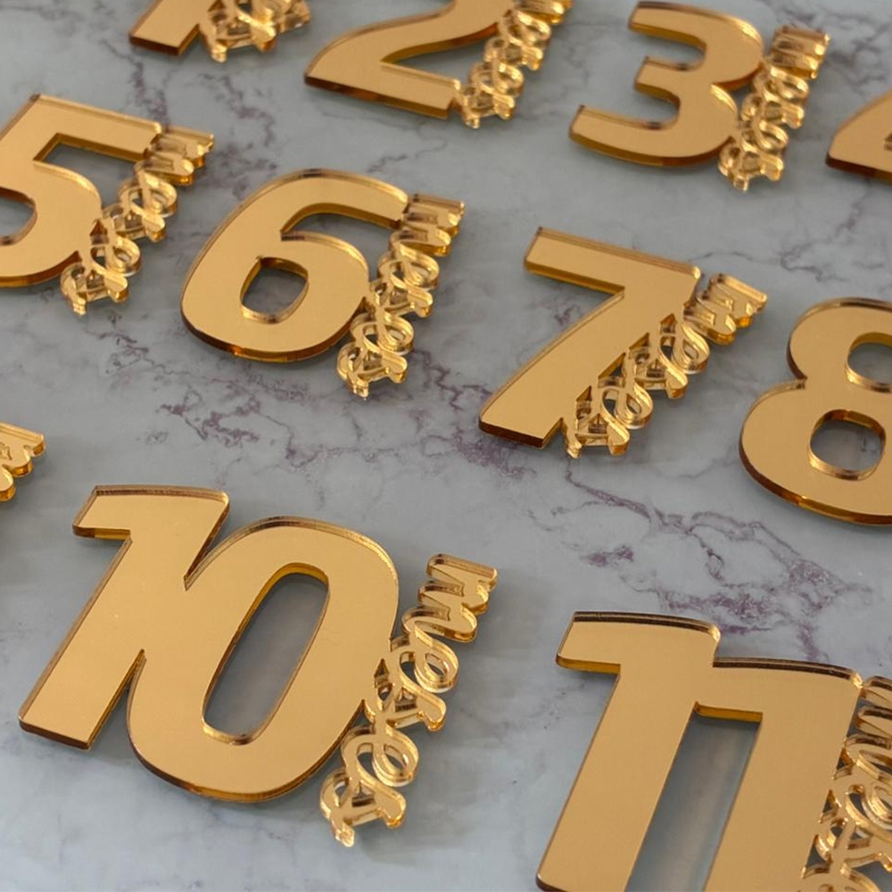 | Kit 11 Números Mêsversário em Acrílico Espelhado (1 a 11) Dourado R... este produto | R$ 28,90 | — | 4.6/5 | 7 |